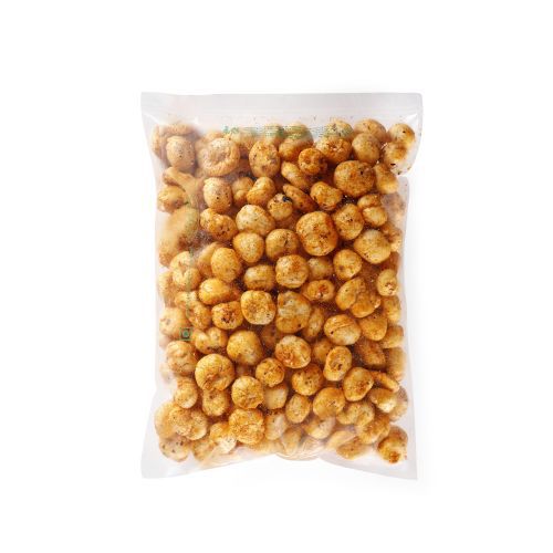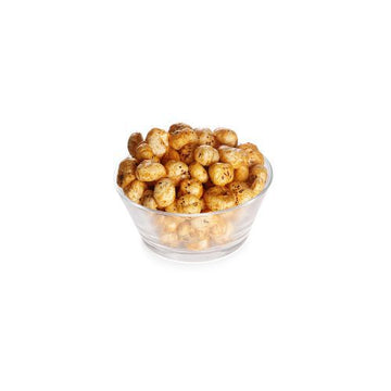 A delectable snack originating from India, crafted from the popped seeds of the lotus flower. Renowned for its crispiness and aromatic flavor, this savory delight is prepared by roasting makhana (fox nuts) to perfection and then tossing them in a blend of aromatic Indian spices, such as cumin, coriander, turmeric, chili powder, and a hint of salt