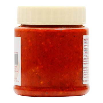 Kohapuri thecha is a fiery and flavorful Maharashtrian condiment originating from the region of Kolhapur in India. It's a potent combination of fresh green or red chilies, garlic, and peanuts or roasted gram dal (chana dal), pounded together into a coarse paste using a mortar and pestle or a grinder.Kohapuri thecha is often served as a side condiment to traditional Maharashtrian meals, particularly with bhakri (a type of flatbread), rice, or with snacks like vada pav or bhajiya. Its intense heat and robust flavor make it a beloved addition to many Indian dishes, adding a delightful kick to every bite.
