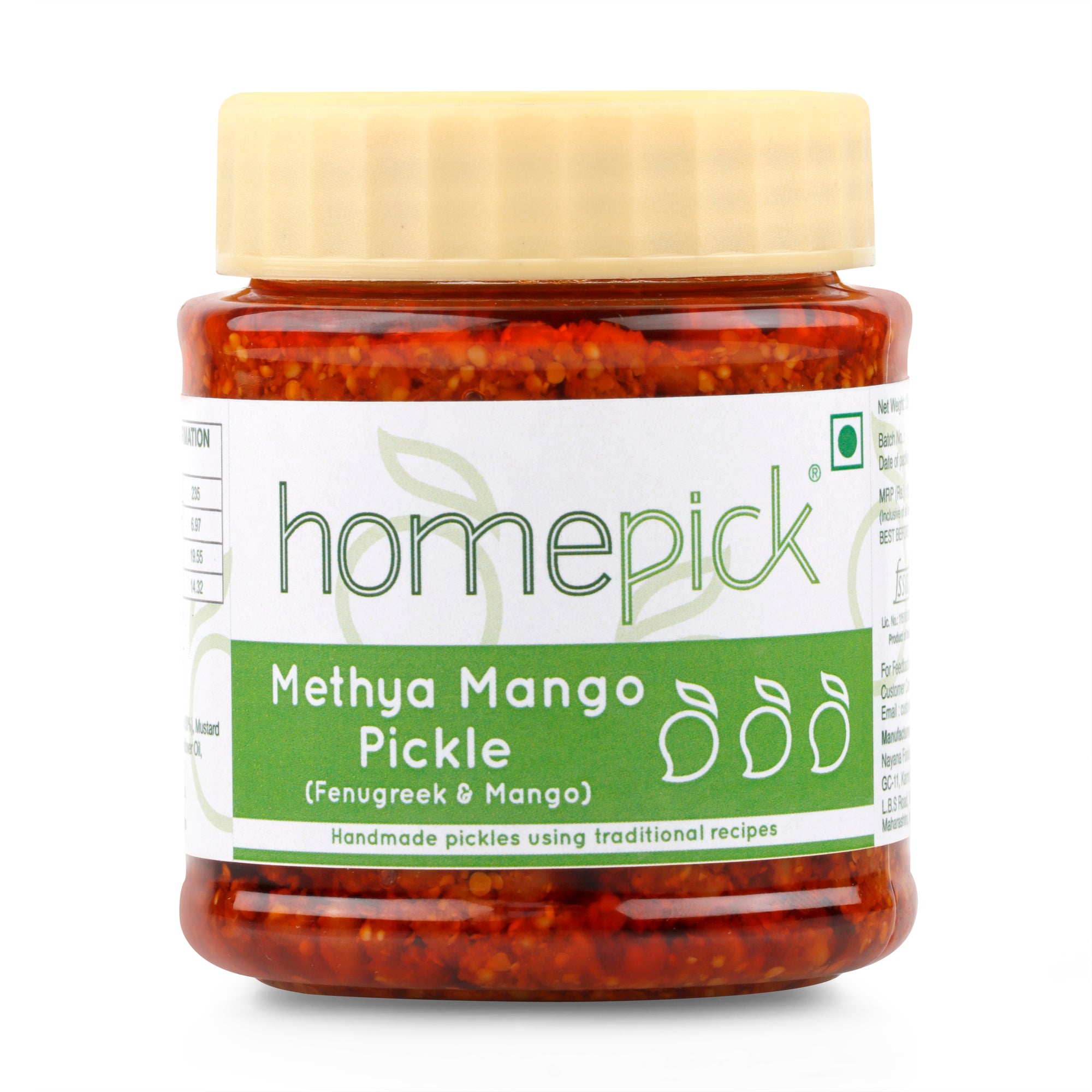 Methya mango pickle, also known as fenugreek mango pickle, is a tantalizing condiment bursting with flavors from the Indian subcontinent. This pickle combines the tanginess of raw mangoes with the earthy bitterness of fenugreek seeds, resulting in a unique and delicious taste experience.The final product is a mouthwatering pickle with a perfect balance of sour, spicy, and bitter notes. It pairs wonderfully with traditional Indian dishes like rice, roti, or dal, adding a burst of flavor to every bite.